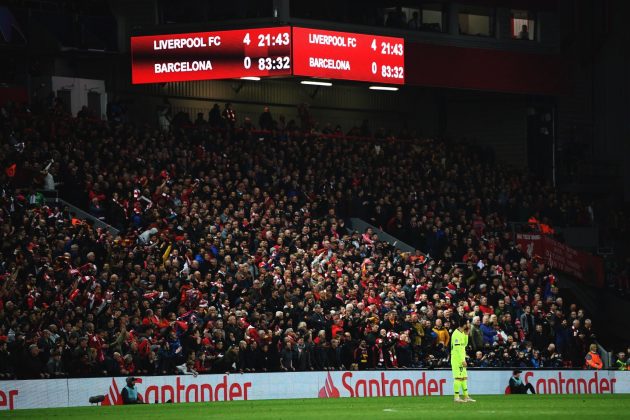 El cuadro de Jürgen Klopp venía de caer 3-0 en su visita al Camp Nou apenas una semana atrás, por lo que estaba obligado a vencer por mínimo cuatro goles al equipo de Lionel Messi.
