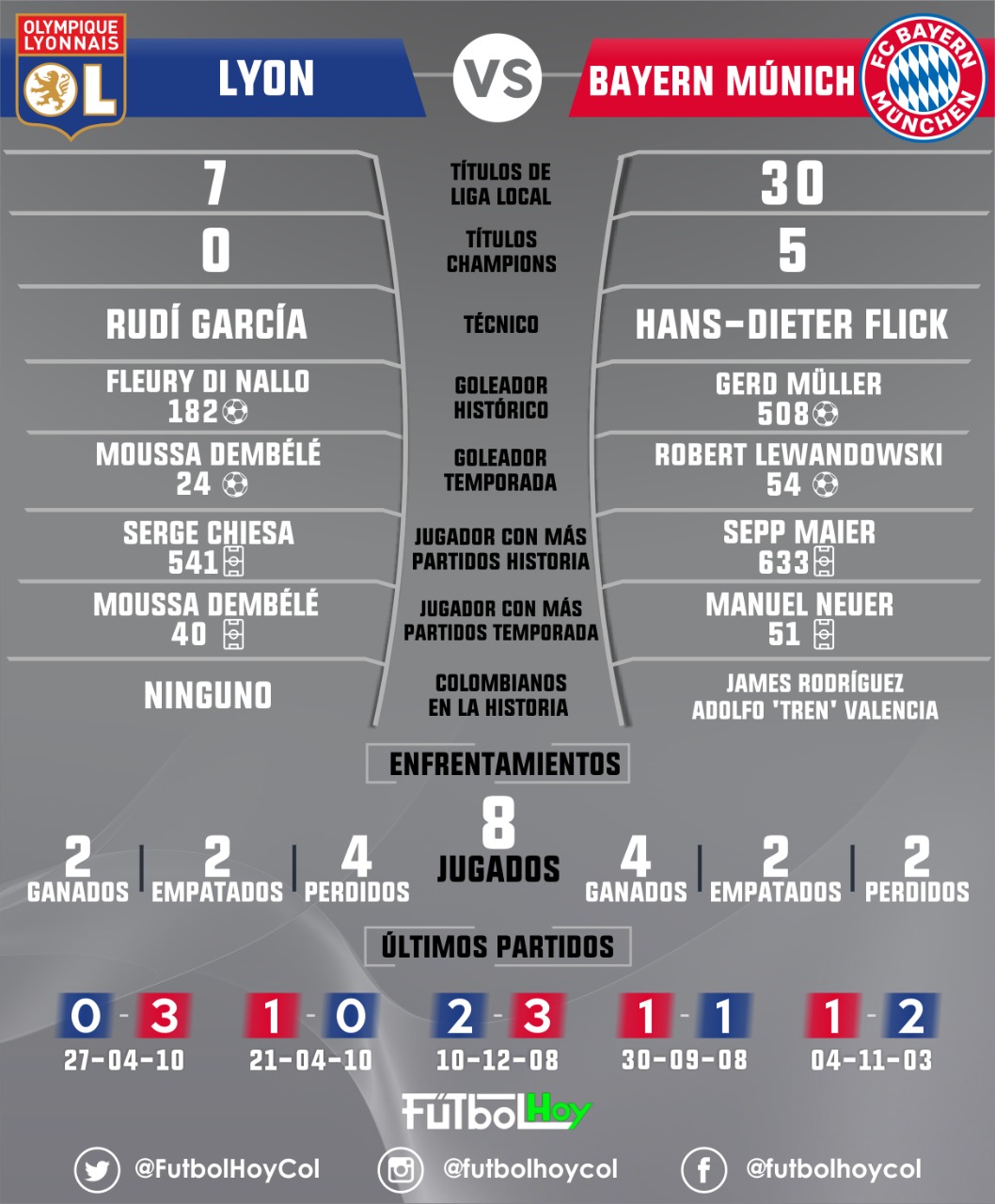Champions League Lyon - Bayern, datos e historial Por Laura Hernández - 18 agosto, 2020 0 711 FacebookTwitterPinterestWhatsApp Síguenos en ... Post Views: 781