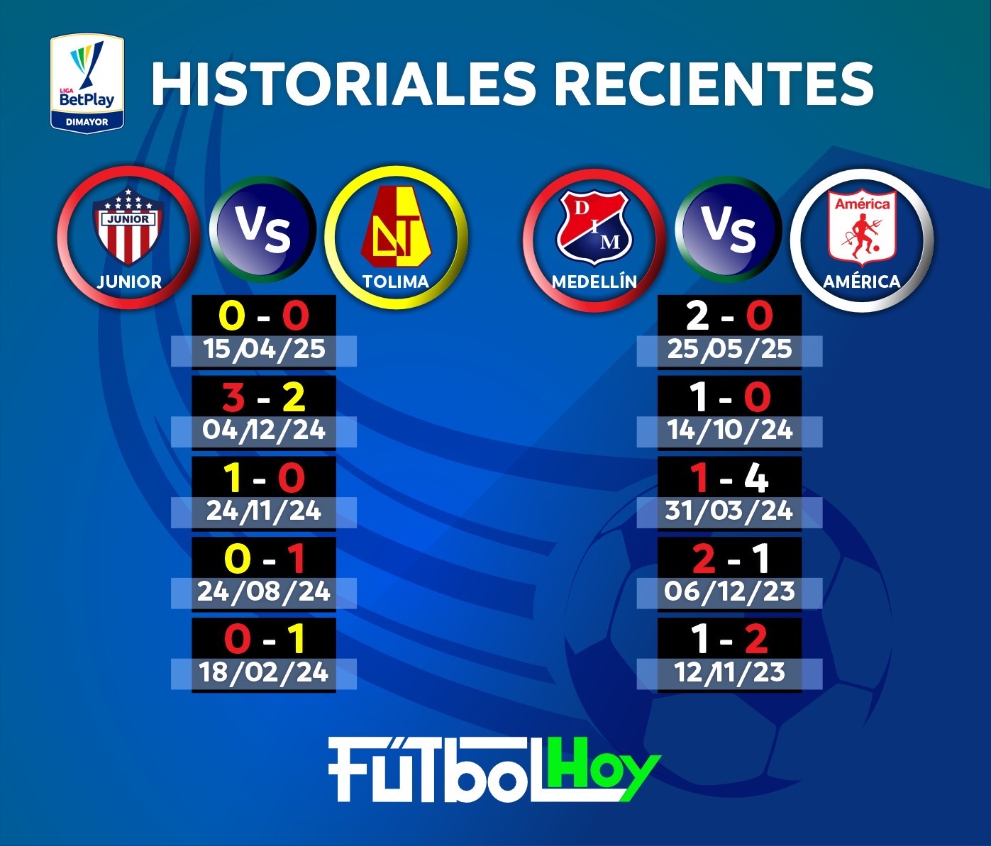 InfografíasLiga BetPlay Historiales recientes de los partidos del día en el Grupo A Por contenido - 31 mayo, 2025 0 455 FacebookTwitterPinterestWhatsApp Síguenos en ... Post Views: 471