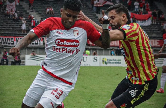El defensor al título Santa Fe debutó con un empate 2-2 en su visita al Deportivo Pereira, en el partido correspondiente a la fecha 1 de la Liga Colombiana, que comenzó ganando y terminó sufriendo.