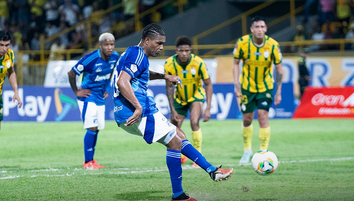 Finalmente, Banguero repitió el cobro, definió igual que en la ejecución anulada, y pese al esfuerzo de Kevin Armesto, el balón se coló en la red para salvar a Millonarios de los penaltis en el Jaime Morón León.