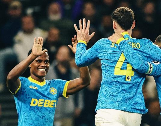 ¡¡ARRIBA URUGUAY!! Santi Bueno aparece en el ST para el primero de los Wolves vs. Tottenham en Londres.