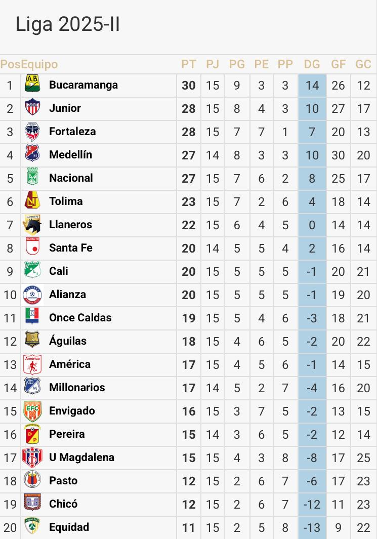 Tabla de posiciones