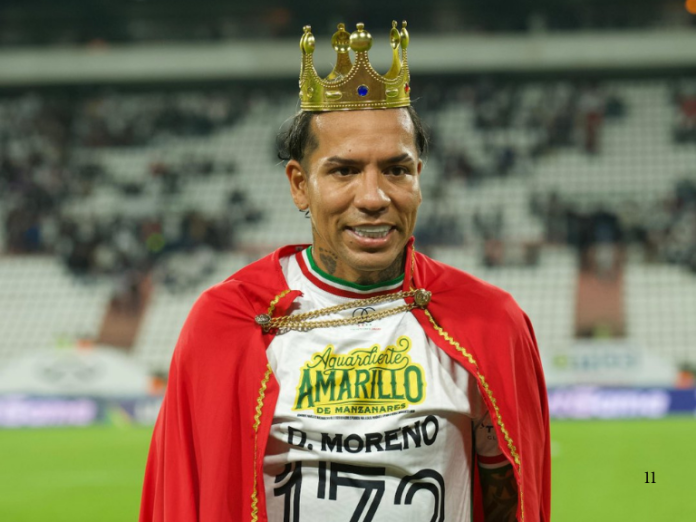 Dayro Moreno continúa dando de qué hablar en el fútbol colombiano. El experimentado delantero se convirtió en el máximo goleador en la historia del Once Caldas, luego de marcar ante Boyacá Chicó su tanto número 172. Fue desde el punto penal y la celebración no pasó desapercibida: corona de rey, capa de monarca y eufórica celebración ante la afición.